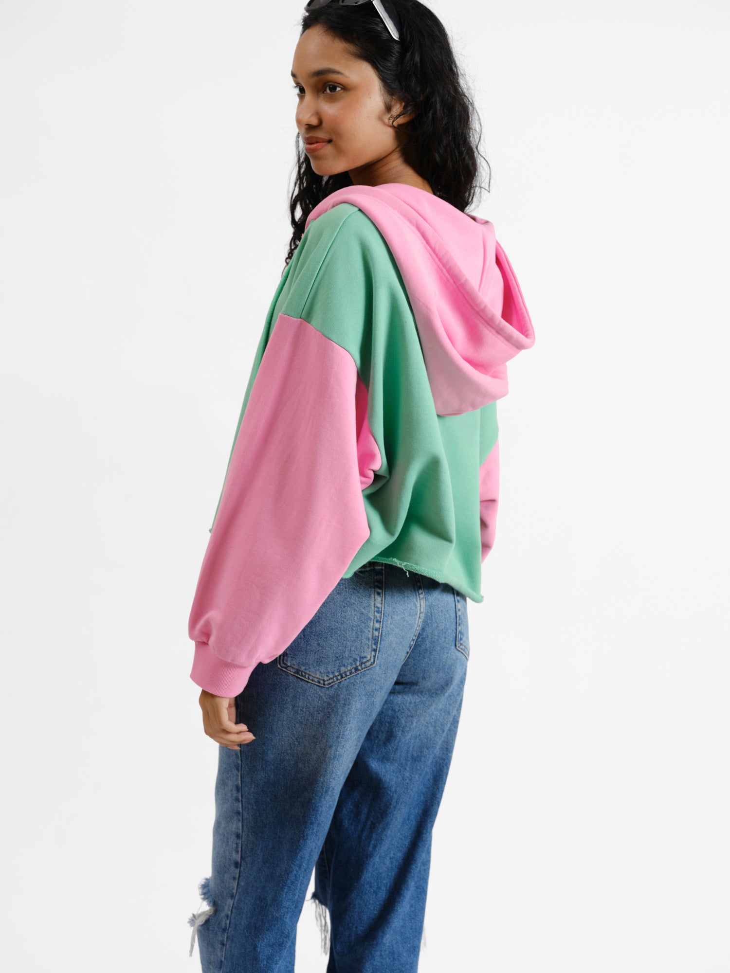 This cropped green hoodie with pink contrast details is cheeky in the best way. It's cosy but sharp, and cropped just right. Made from organic cotton, this one’s for the days you want to feel cute, comfy, and a little chaotic (on purpose).