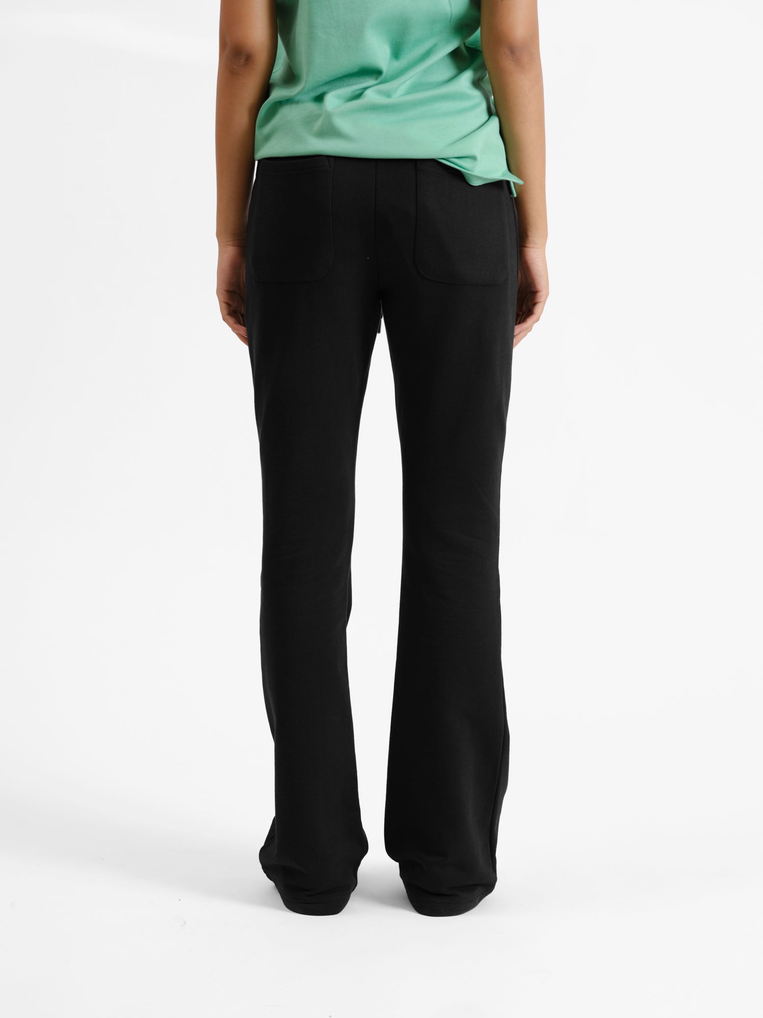 A solid base for your most extra tops or a quiet complement to your loudest layers. These black flared pants are sleek, simple, and wildly flattering. Crafted from organic cotton, they’re your go-to when you want to add a little extra oomph to everyday fits.